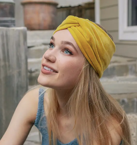 The softest mustard headband that's perfect for keeping your ears cozy. Stretchy & non-slip. 100% polyester, machine washable.