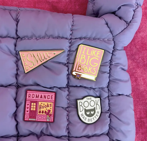 An enamel pin for romance readers. It's romantic pizzazz for your lapel or your bag! Returning mid-february.