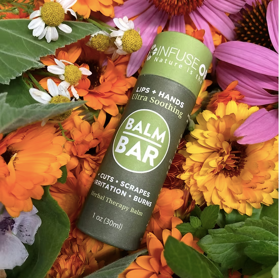 What started it all for Infuse Organics! Made locally on their farm, Balm Bar is a non-greasy, all-purpose, natural solution for your skin. Balm Bar moisturizes, protects, and utilizes safe, clinically proven medicinal plants and herbs to offer first aid relief to your dry, cracked skin, as well as cuts, scrapes, and burns. Balm Bar 0.5oz comes with one long-lasting bar that fits perfectly in your pocket, pack or purse. Balm Bar 2.5oz contains two large, long-lasting, palm-sized bars perfect for anywhere you need skin treatment and relief from dryness, abrasions, and itching. Balm Bar 1.0oz ECO Tube utilizes a grease-proof, cardboard paper push-up tube for all your skin lovin' needs. It's like lip balm on steroids. Totally rad.