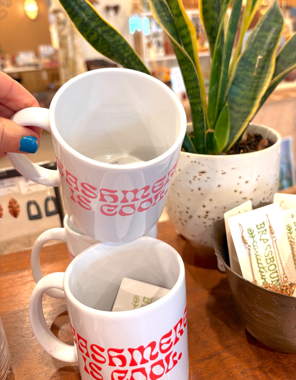 Cashmere is Cool! The classic diner mug with our custom graphic. Hand wash :) Available in multiple colors: Bubblegum Pink or Poppy Red.