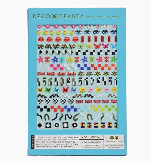 For best results, use a thick top coat (Deco's Gel Effect Plumping Top Coat was specifically designed in mind for this job) to seal the sticker on your nail. You may need to put an extra coat overtop of gold metallic stickers.