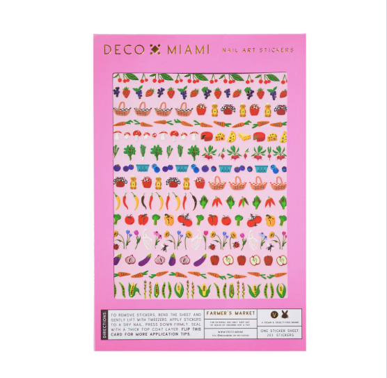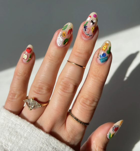 Wearing tiny fruits and veggies on your nails never gets old. Farmer's Market features the tiniest foods with little gold accents. Don't sleep on the jam jars and honey bottles.